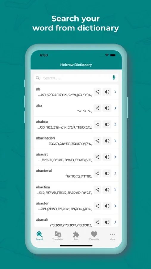 Explore an extensive vocabulary, user-friendly interface, English definitions, engaging quiz games, spoken English and English audio pronunciations. English to Hebrew Dictionary Offline and Translator Also provides the Translator to translate Hebrew text into multiple languages.
