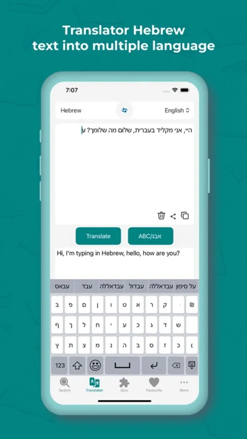 English to Hebrew Dictionary Offline will provide an Hebrew Keyboard for Writing in Hebrew within the translator page. With this feature, you can enhance your communication and understanding of Hebrew like never before.