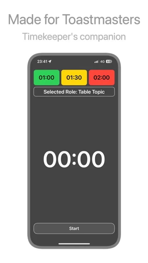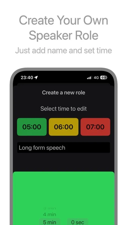 Create Custom Speaker Roles: Tailor the timing to suit any speech format. Simply add a name and set the time parameters for green, yellow, and red indicators.
