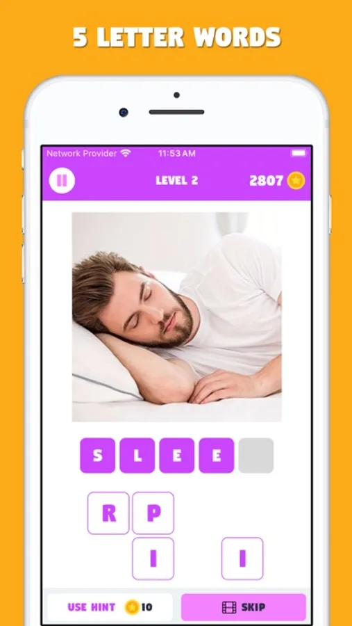 Stuck on a tricky image? Use a hint to reveal correct letters. Hints cost 10 coins each.
