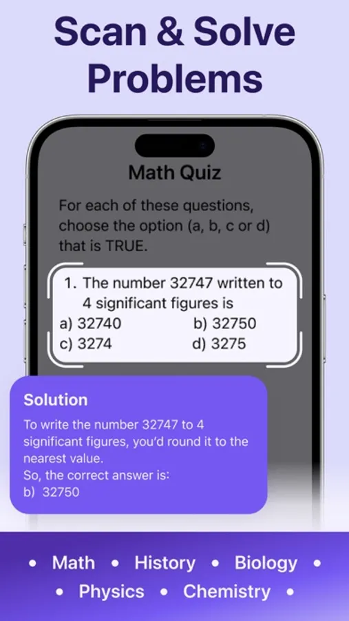 Our app is a powerful tool designed to help students learn new concepts, prepare for exams, and master subjects like mathematics, chemistry, and physics. Unlike traditional tutoring services, it doesn't just provide answers; it guides students through each problem with detailed, step-by-step explanations and solutions, empowering them to understand and solve similar problems independently.