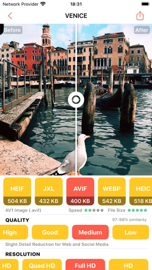 • Storage Savers: Keep more photos on your device by significantly reducing their file sizes.