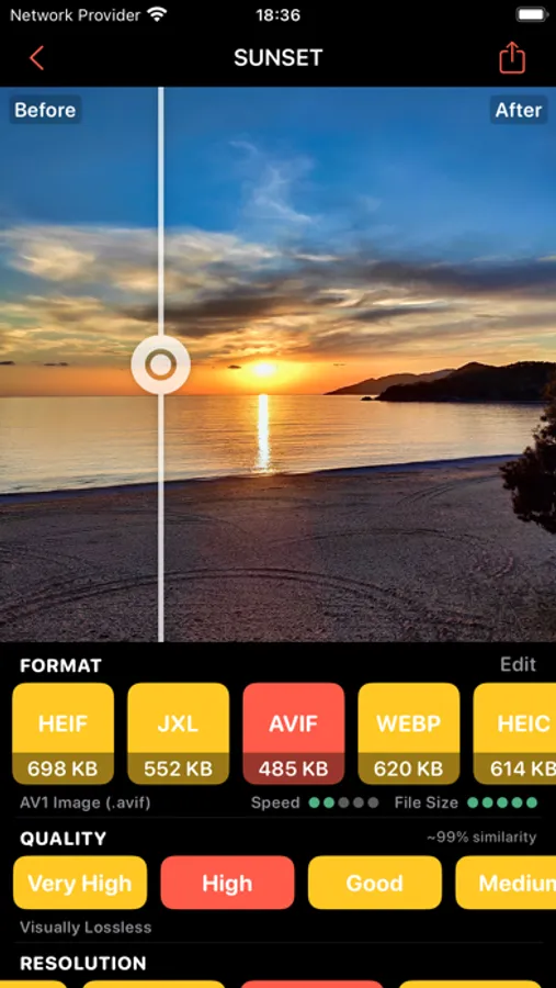• Supports Multiple Formats: Compress images in JPEG, HEIF, AVIF, WEBP, JPEG XL, and more!