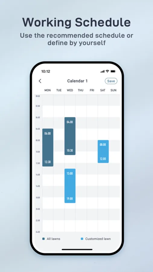 【Intelligent Scheduling】 Customise your needs and set the work schedule of the equipment. You can choose a specific period of time every day, week or month, without manual control, so that the equipment automatically carry out work to complete garden maintenance.