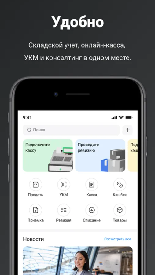 · Сканирование QR и штрихкодов для совершения продаж, проверки УКМ и других операции