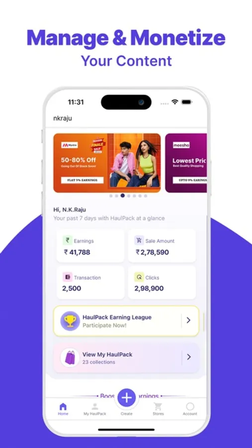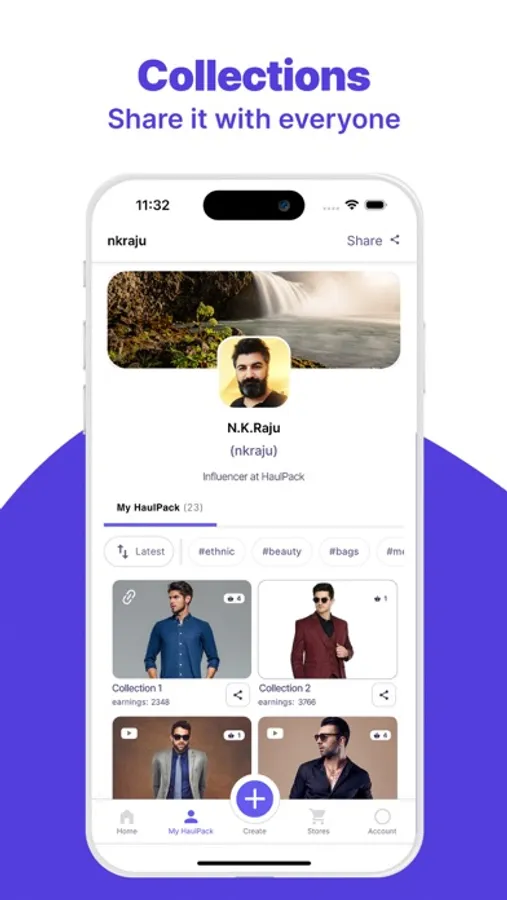 - We give you a unique HaulPack link for every Collection you create, which takes your audience to your Collection, from where when someone makes a purchase, you get a certain percentage of sale amount as earnings.