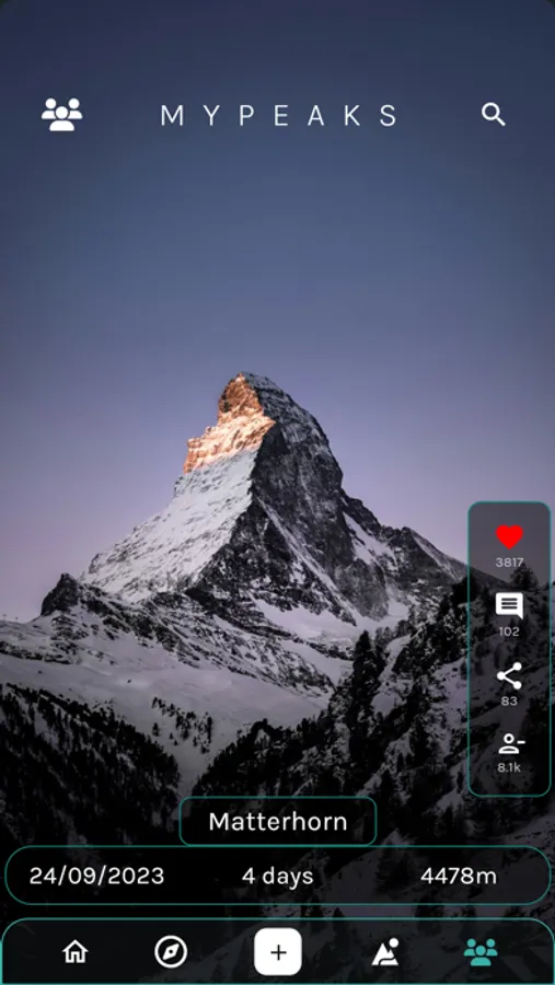 With MyPeaks, every user can dive into a personalized 'Discover' feed, showcasing exhilarating journeys and breathtaking moments from fellow climbers. The platform encourages you to draw inspiration from a global network of peers, each sharing their unique perspectives from peaks around the world.