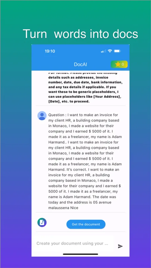 Create professional documents effortlessly with our AI-powered document generation app. Simply input your prompts, and our advanced AI technology crafts high-quality Docs tailored to your needs. Whether you need reports, eBooks, or invoices, our app delivers precise and polished documents every time.