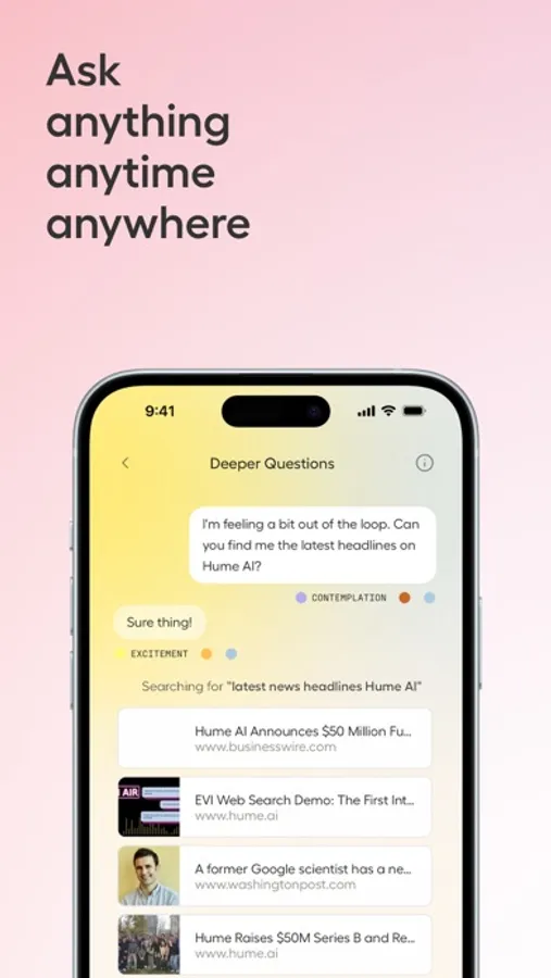 Now, with infinite voices and personalities, use Hume to explore new ideas, provide quick answers, or simply listen.