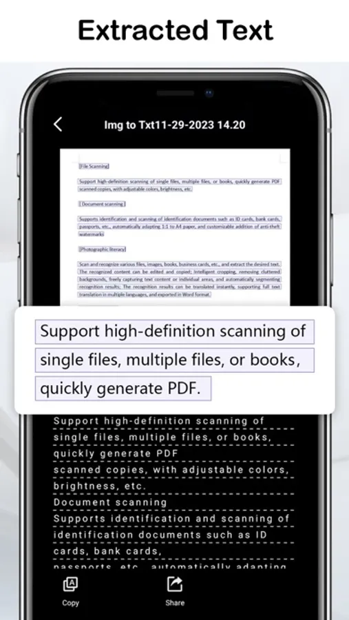 Share with Ease: Share the extracted text directly via email, messaging apps, or social media.