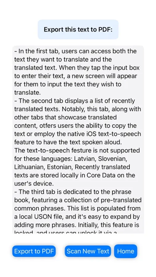Export to PDF: Convert your extracted text into a professional PDF format with just a tap, perfect for archiving and sharing.