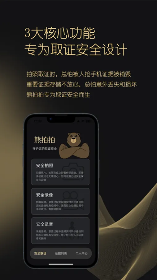 总之,熊拍拍是一个专注于取证安全过程的强大app,如果您也是经常需要用手机拍摄记录一些重要证据,但是强势的对方会企图抢走损坏手机,销毁证据,那么熊拍拍非常适合您