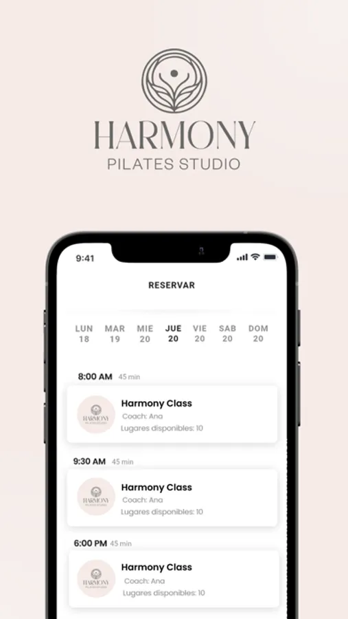 Desde nuestra aplicación de Harmony Pilates Studio podrás revisar los horarios de nuestro centro fitness y reservar tu reformer de forma fácil, también podrás adquirir tus paquetes o membresías desde nuestra app.