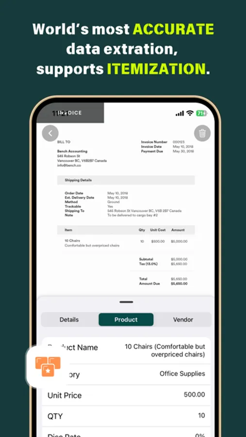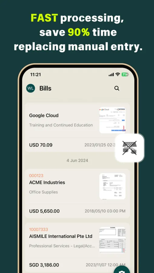 Capture invoices, receipts, and bank statements in multiple languages, currencies and even handwritten bills. Simply snap and upload, and AI will instantly record and categorize.