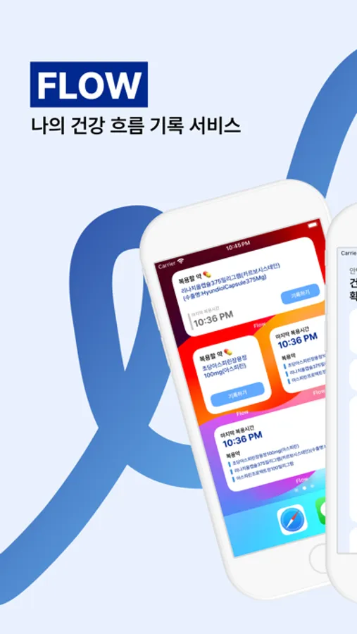 4. 이런 문제점을 해결하기 위해 위젯으로 홈 화면에서 간단하게 기록하고, 마지막으로 복약한 시간을 위젯으로 확인할 수 있는 기능을 추가한 서비스인 Flow를 개발하게 되었습니다.