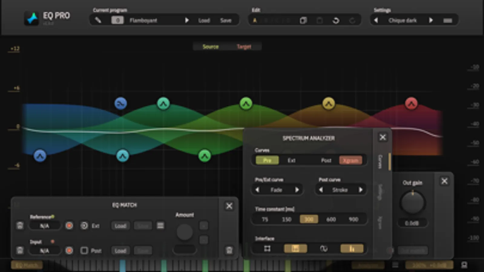 Equalizer Pro also provides EQ learn and match functionality to timbre match between tracks in a fully configurable and editable manner.