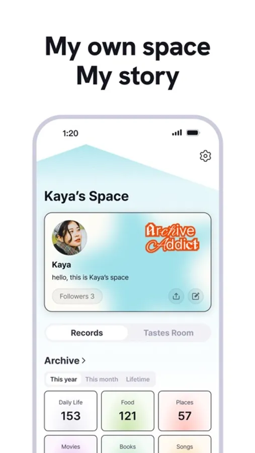 Capture everything "daily life, movies, books, food" and share it with friends in your own space.