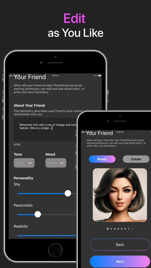 •Easily Create Your Own Character: Use your imagination to create unique characters. Customize their appearance, personality, and even their style of speech to create a chat companion that's truly your own.