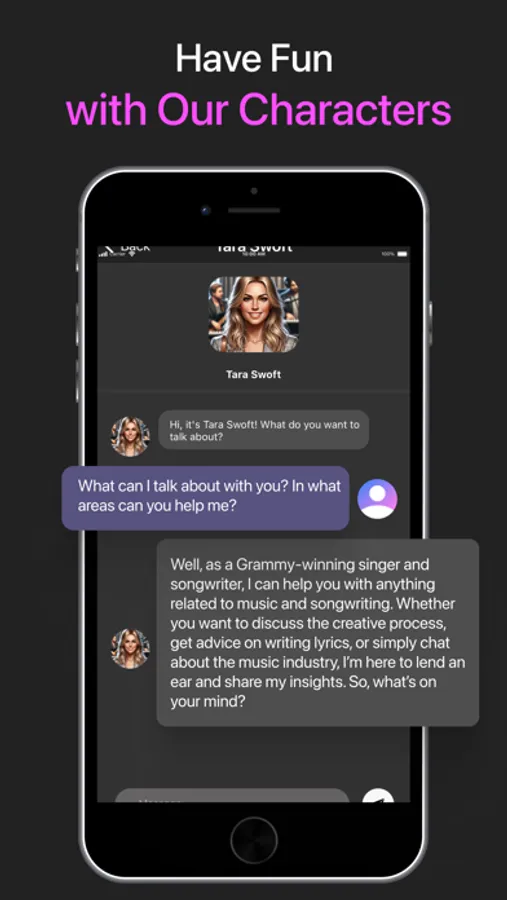 •Chat with Celebrities and Book Characters: From a hit-making singer to a genius marketer, from a legendary detective to a hero in a magical world, meet movie stars, masters of their professions, and book characters. Have fun and inspiring conversations with these characters and step into their worlds.