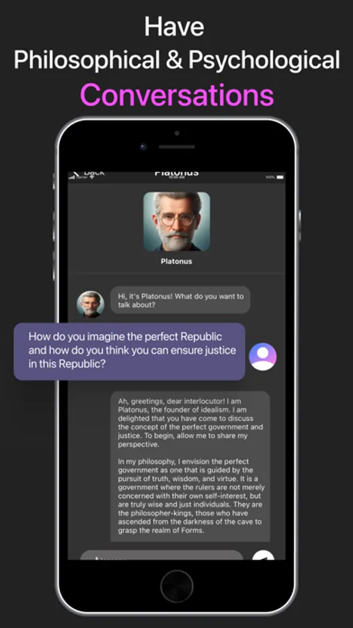•Philosophical and Psychological Conversations: Discuss deep philosophical topics, discover new perspectives, and relax with our psychologist characters when you need emotional support. Engage in intellectual conversations that will expand your mind and feel secure with characters who guide you through tough times.