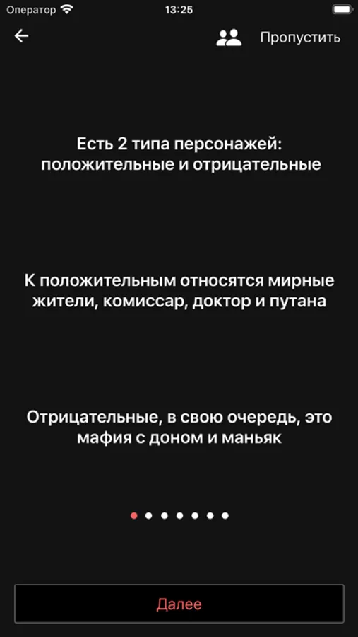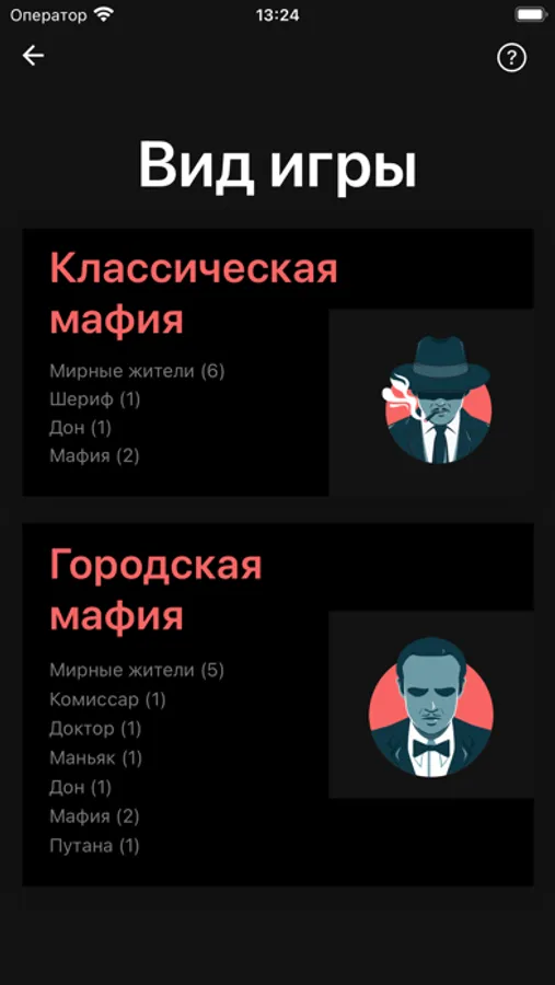 «Мафия» — одна из самых известных психологических игр. Вы делитесь случайным образом на простых жителей и преступников и пытаетесь выяснить, кто есть кто. Один раунд — один игровой день. Днём жители пытаются вычислить преступников, а ночью преступники выбирают свою жертву. С каждым игровым днём напряжение нарастает.