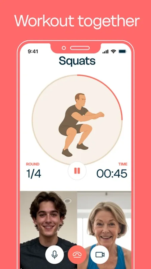 Each workout lasts just 16 minutes and is perfectly tailored to your level. Thanks to the unique video call feature, you can work out together with friends, family, or partners, even from a distance. No complicated exercises, expensive equipment, or extensive knowledge needed.