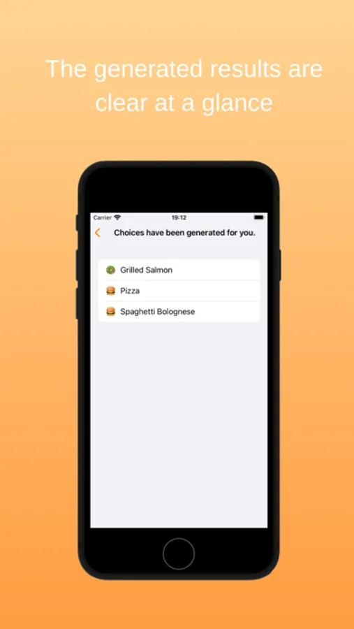 You can enrich your selection library by adding your favorite foods to the app. The next time you're unsure about what to eat, just open the app and it will generate options for you.