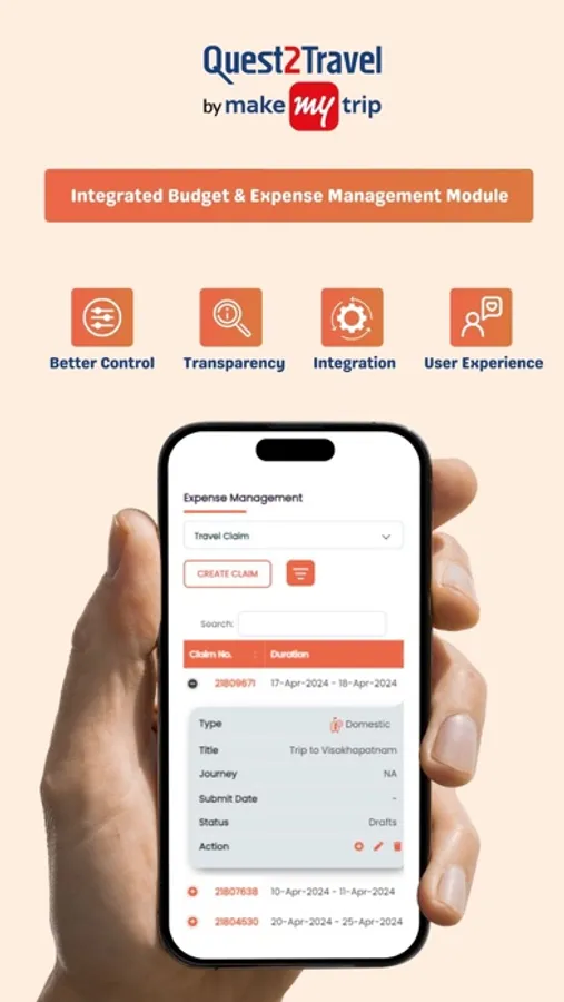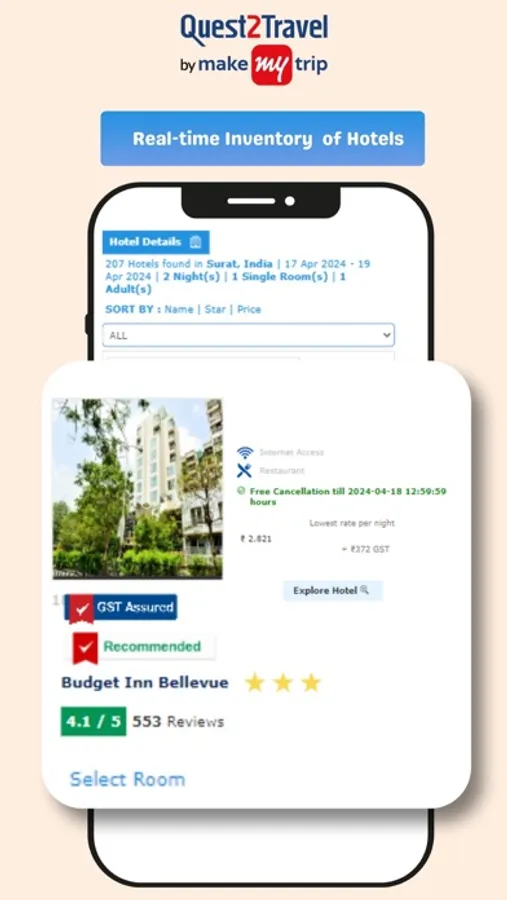 Download Quest2Travel – your trusted corporate travel app by MakeMyTrip to discover the convenience of seamless business travel. From booking flights and hotels to managing budget & expenses, this self-booking tool simplifies every aspect of your journey within no time.