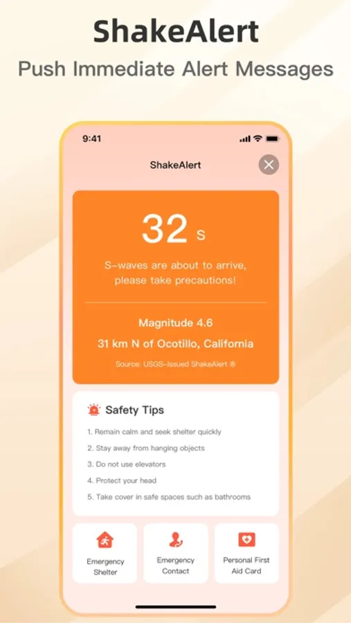 Push instant earthquake warning information a few seconds to tens of seconds in advance when an earthquake occurs, giving you time to avoid danger
