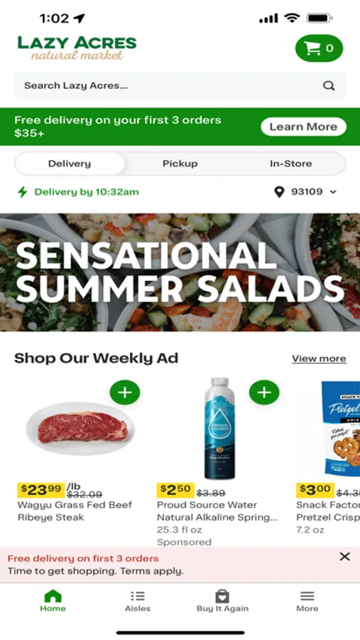 Enjoy the convenience of having high-quality, natural, and sustainably sourced products from Lazy Acres available in as little as two hours. Our wide selection includes organic produce, premium meats and seafood, eco-friendly household products, plus conscious beauty & clean wellness items—all available for same-day pickup or delivery.