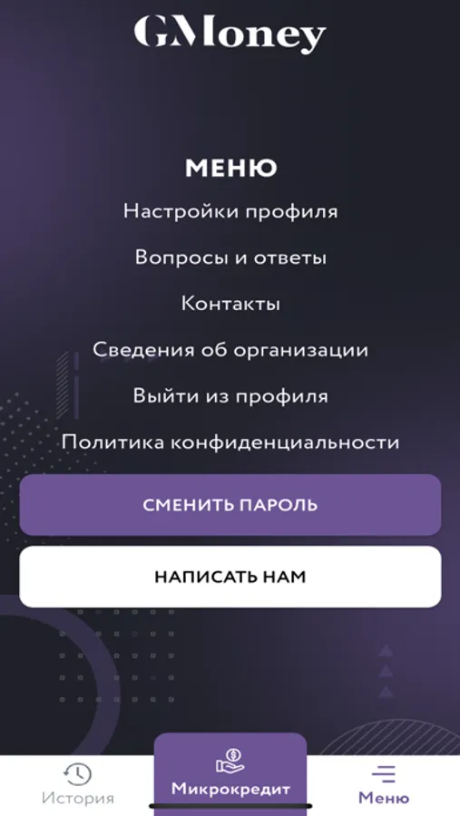 С помощью мобильного приложения «Gmoney» Вы можете: - Подать заявку на онлайн займ из любого места - без визитов в отделение и очередей; - Занять деньги до зп и получить срочный микрокредит сразу после одобрения; - Управлять текущими финансами (проверять статус, погашать кредит);