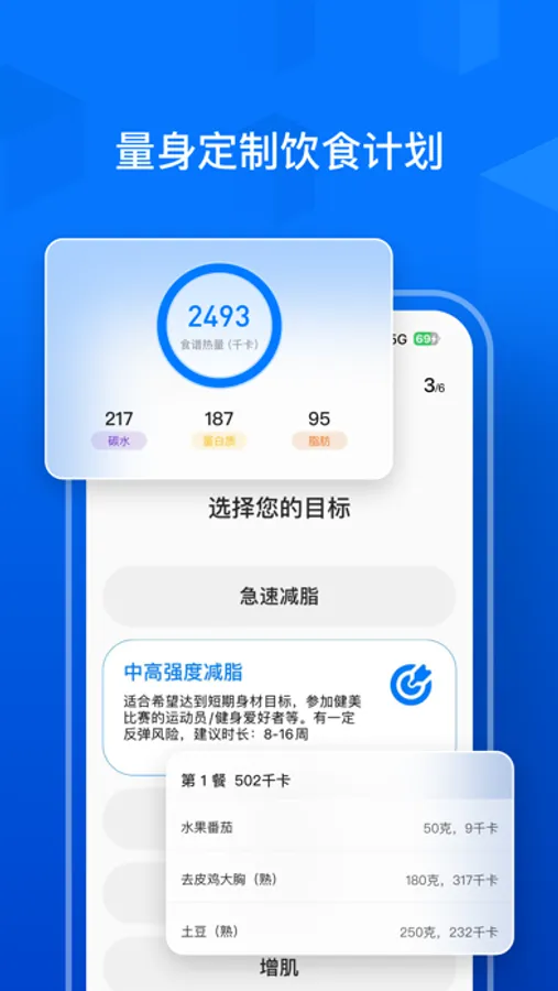 由运动员和营养师共同打造的独特算法,根据您的健身目标、水平和生活习惯,为您免费量身定制一个运动员级别的营养摄入目标。让专业饮食触手可及,人人都能享受。