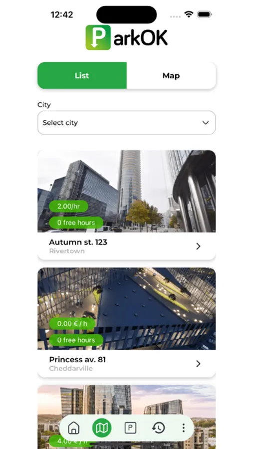 - Raskite laisvas parkingo vietas netoliese: Naudokitės ParkOK, kad realiu laiku galėtumėte rasti netoliese esančias parkavimo vietas ir galėtumėte greitai, ir be jokio streso pasistatyti automobilį.
