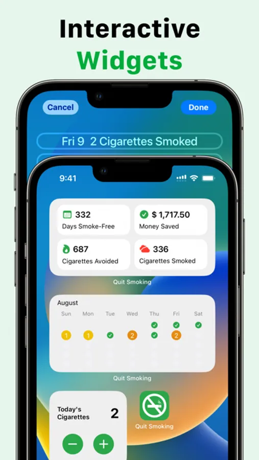 • Widgets – Quickly view your quit smoking progress right from your home screen.