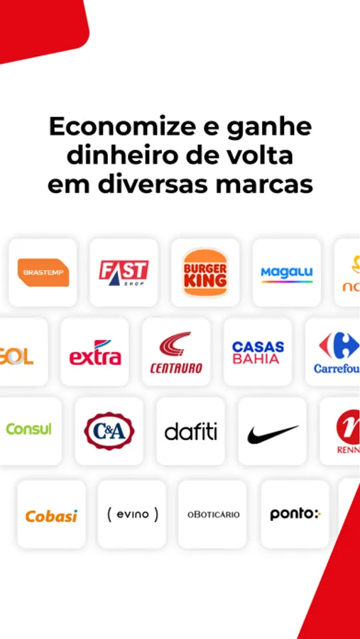 Navegue por um cardápio de ofertas com marcas parceiras de diversos segmentos.