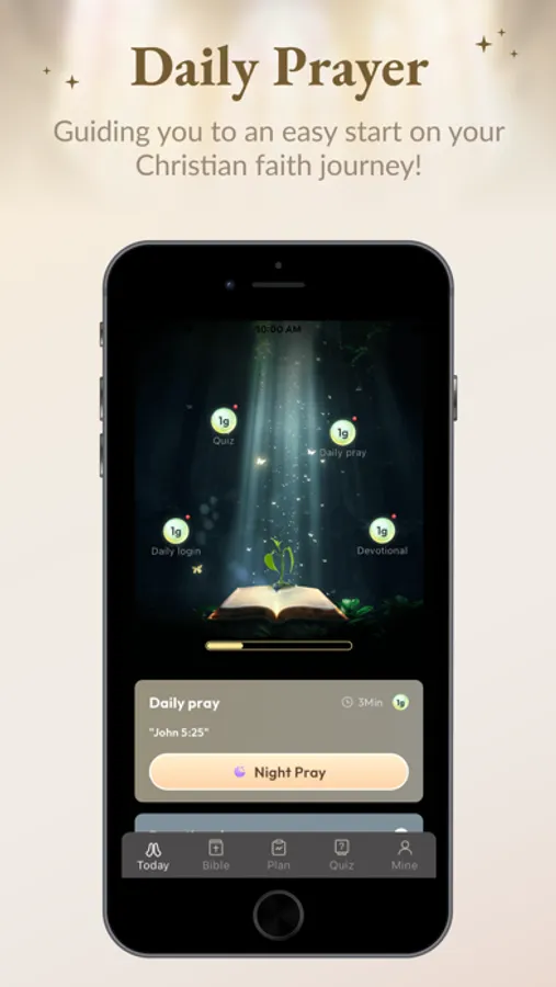 With our handy widgets, you can add Prayer, Bible Reading, and Quiz features directly to your home screen for quick access.
