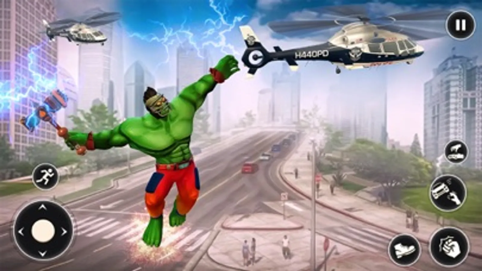 Ork Monster Hero Game is full with action-packed Game in open world. In which Player Can roar, high jump, run, kick, smash, punch, pick up car and people to throw them. Health of player is decreased by police firing. Complete point scoring which is used for next level.