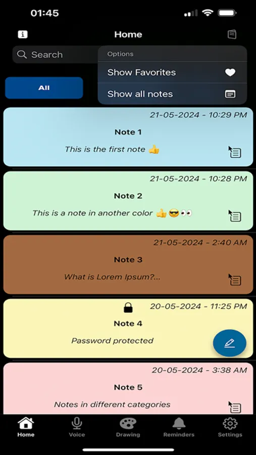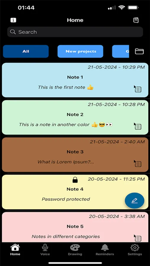 Create notes in different colors with ZNotes. With our notes app you can also create different categories and save the notes there so you can always quickly access your notes.