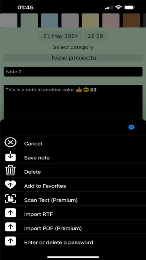 As a special feature, it is possible to protect individual notes with a password.