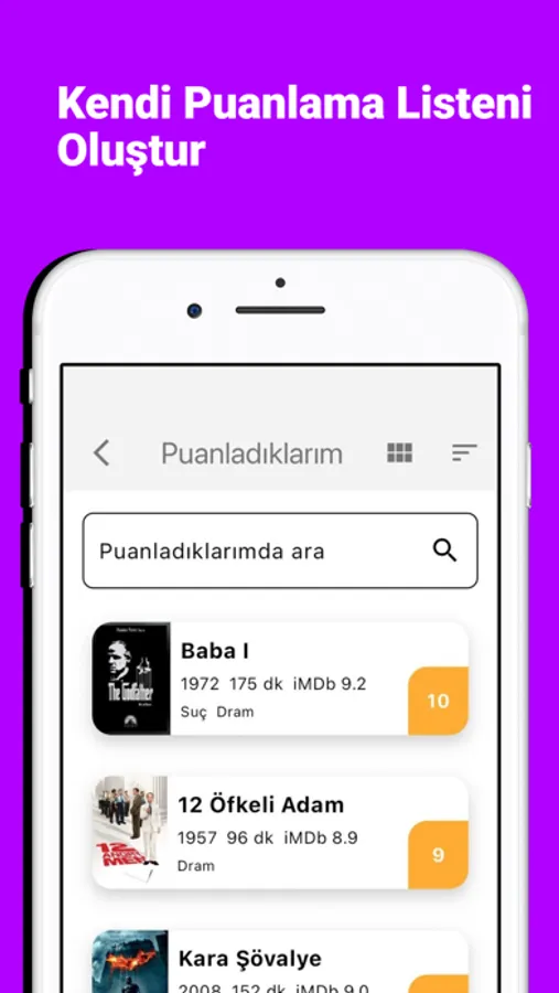 İzlediklerim: İzlediğiniz filmleri tekrar gözden geçirin ve IMDb puanına, çıkış yılına veya uzunluğuna göre sıralayın. Film arşivinizi yeniden keşfedin ve favorilerinizi toplayın.