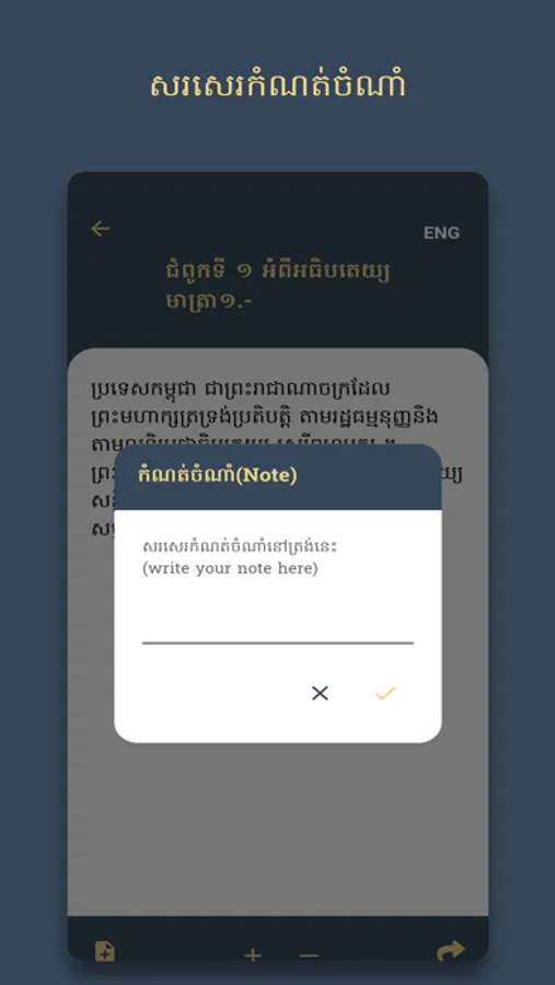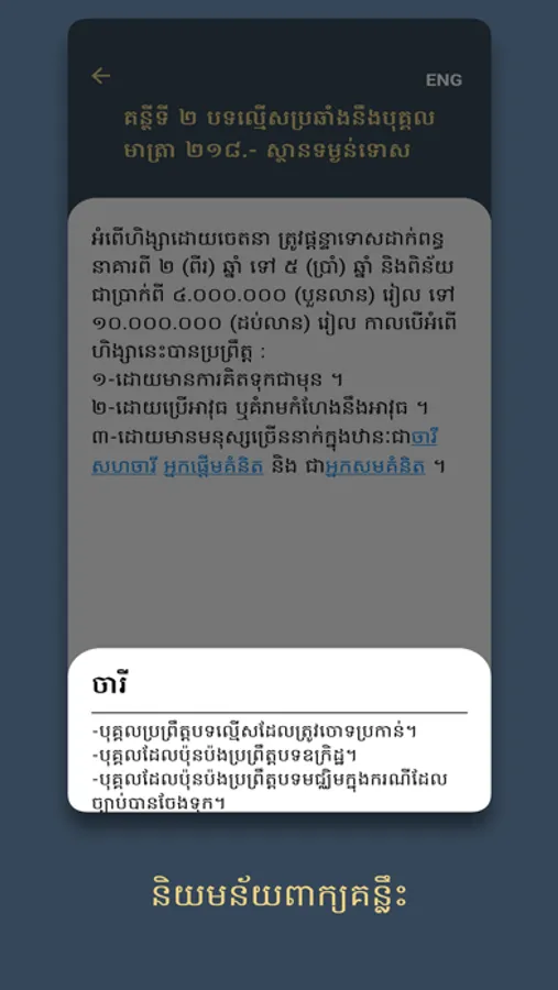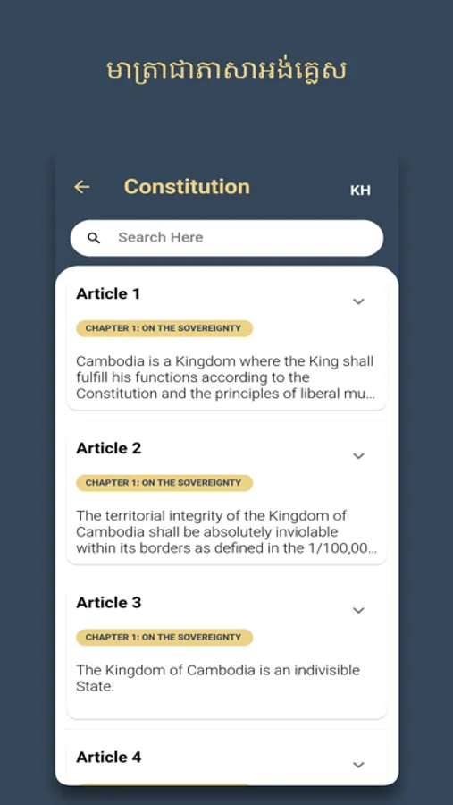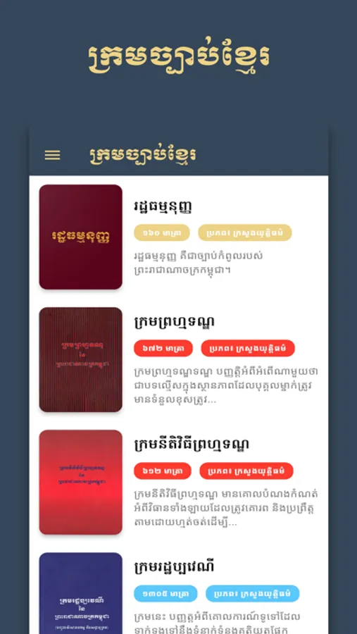 The Khmer Law Code mobile app is designed for everyone to improve the accessibility and readability of Cambodia Law Codes.