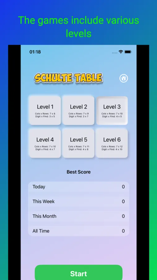 Test and improve your visual perception and speed with Schulte Table! This classic game is designed to enhance your attention, concentration, and quick reading ability. Search for numbers as quickly as possible, all while training your brain to process visual information more efficiently.