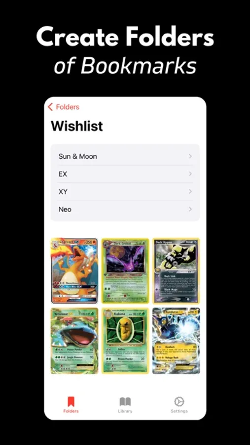 Create Folders of Bookmarked Cards: Organize your collection with custom folders. Bookmark your favorite cards and keep track of your most valuable assets.