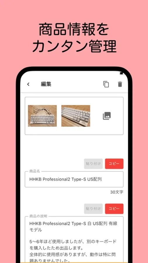- 商品の状態、カテゴリも残せます。