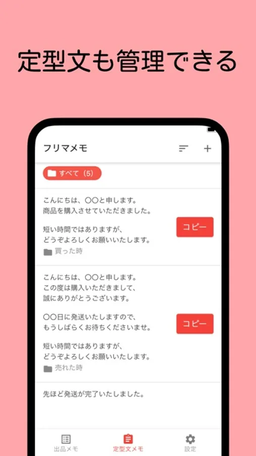 「メルカリ」「ラクマ」「Yahoo!フリマ」などのフリマアプリに便利なメモアプリです。