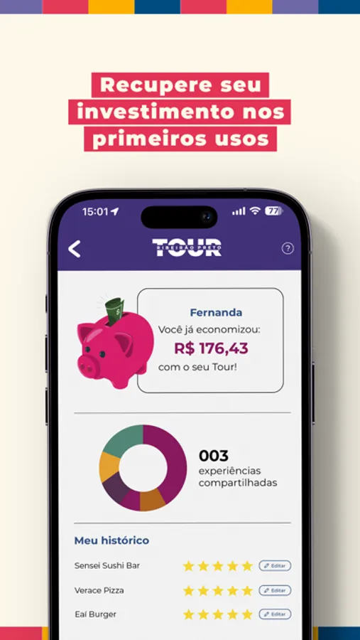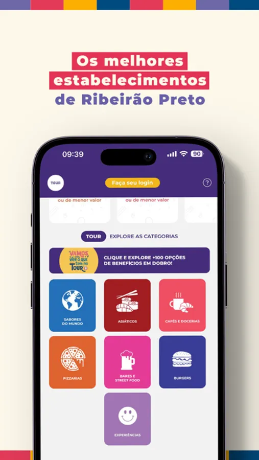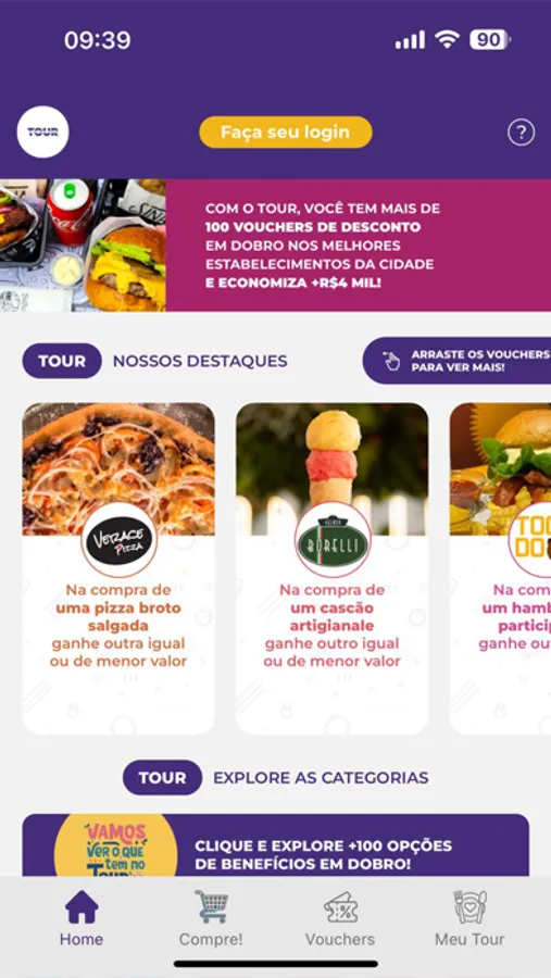 Com o Tour, você tem acesso a mais de 100 vouchers incríveis e com benefícios em dobro - você compra um prato e ganha outro!