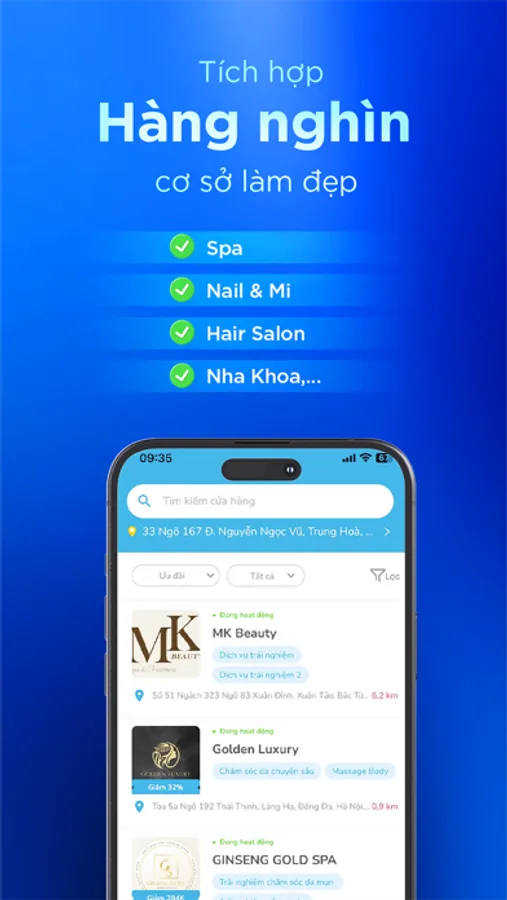 Ngồi tại nhà bạn vẫn có thể TÌM KIẾM các ĐỊA CHỈ LÀM ĐẸP UY TÍN gần bạn với mức giá mong muốn không còn là vấn đề ở Booking Now. Hệ thống sẽ tự động đề xuất các địa chỉ làm đẹp gần bạn để bạn có thể thoải mái chọn lựa.