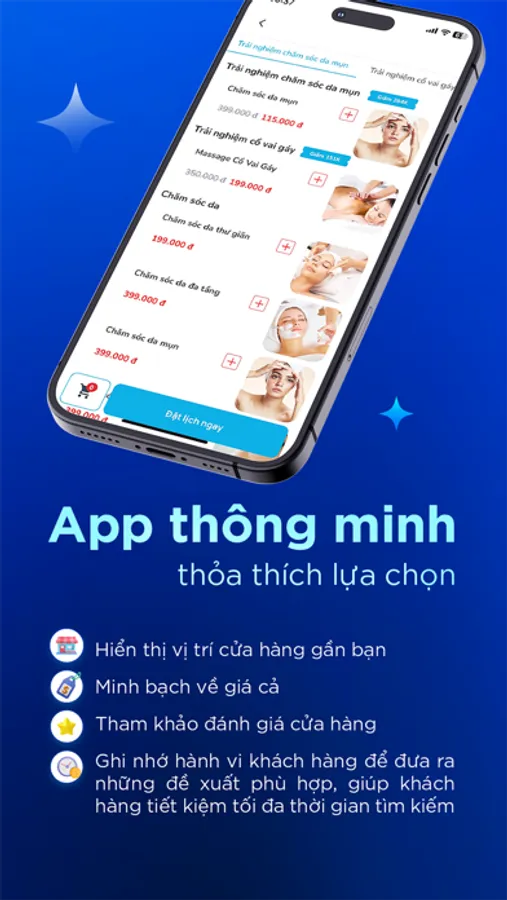 Ứng dụng giúp người dùng dễ dàng ĐẶT LỊCH làm đẹp tại các Spa, Salon, Nail, và các dịch vụ giải trí. Bạn có thể xem chi tiết về dịch vụ và giá cả của các cửa hàng để đưa ra quyết định đặt lịch hẹn một cách nhanh chóng và thuận tiện.