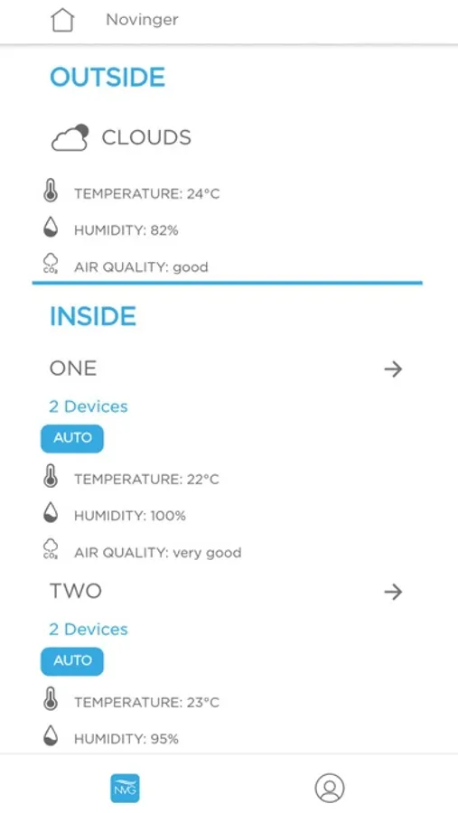 NVG app connects to the nearest weather stations for the detection of outdoor environmental conditions and it is also able to control the status of the indoor air quality thanks to an on-board VOC sensor.