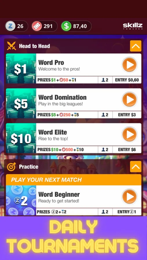 Real Cash Prizes: Put your skills to the test and win real cash prizes. Every competition offers a chance to earn real money. Are you ready to turn your word knowledge into cash?